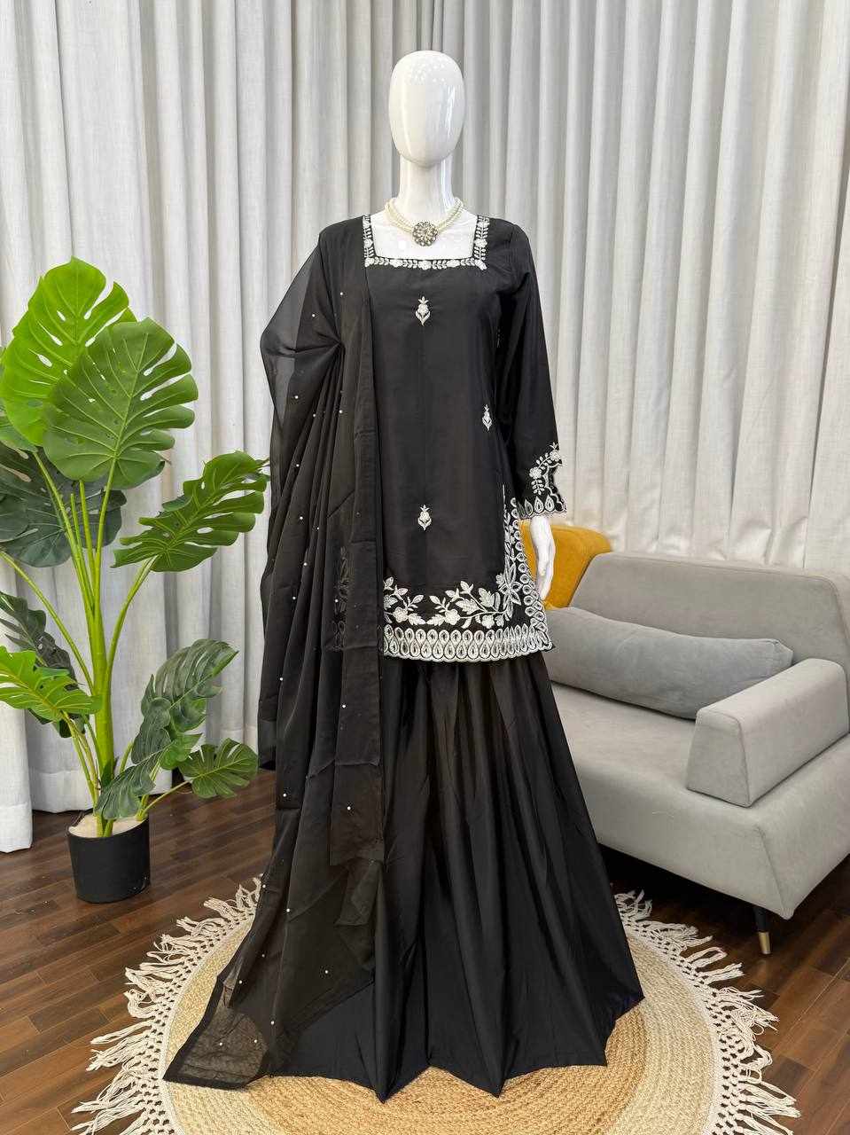 Heavy Natural Crepe Designer Plazzo Set