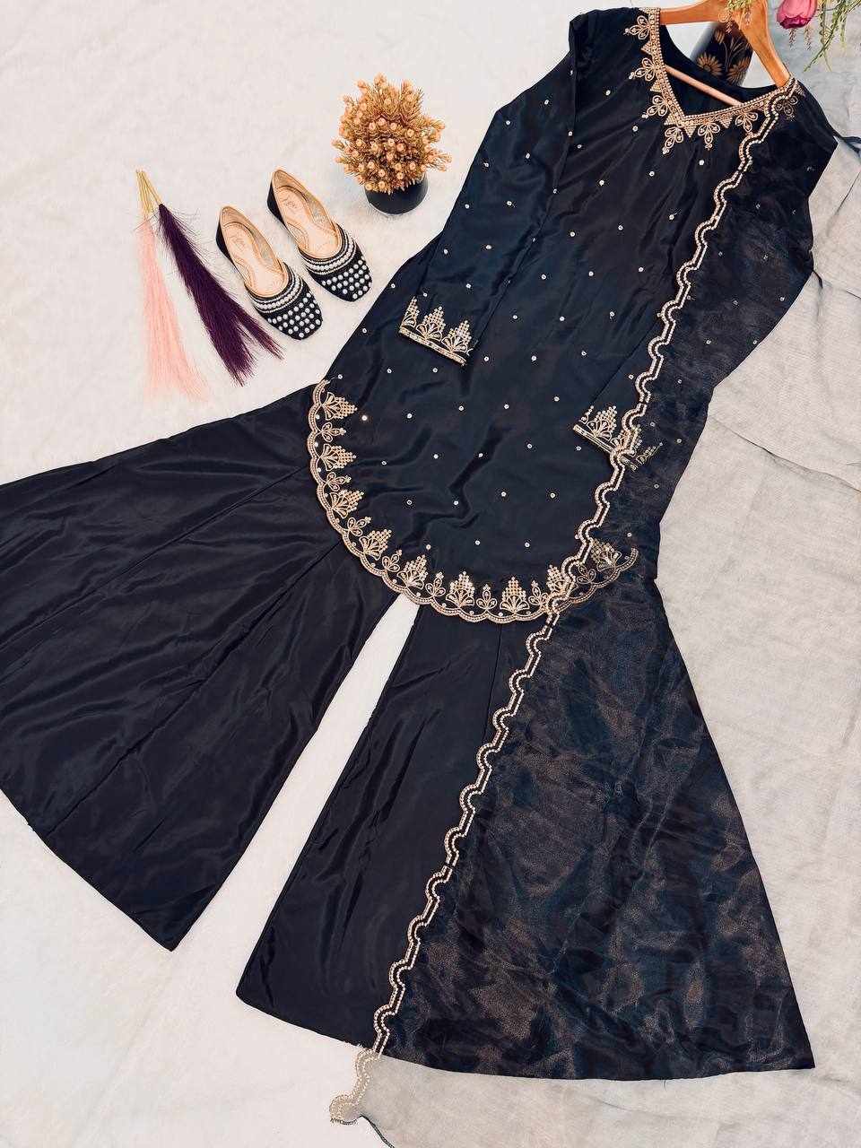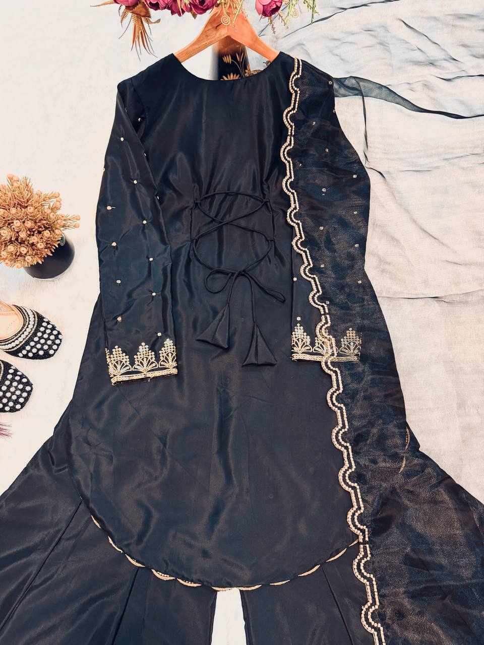 Top Fabric :- Heavy Natural Crepe Silk with Heavy 5mm Embroidery Sequence Work