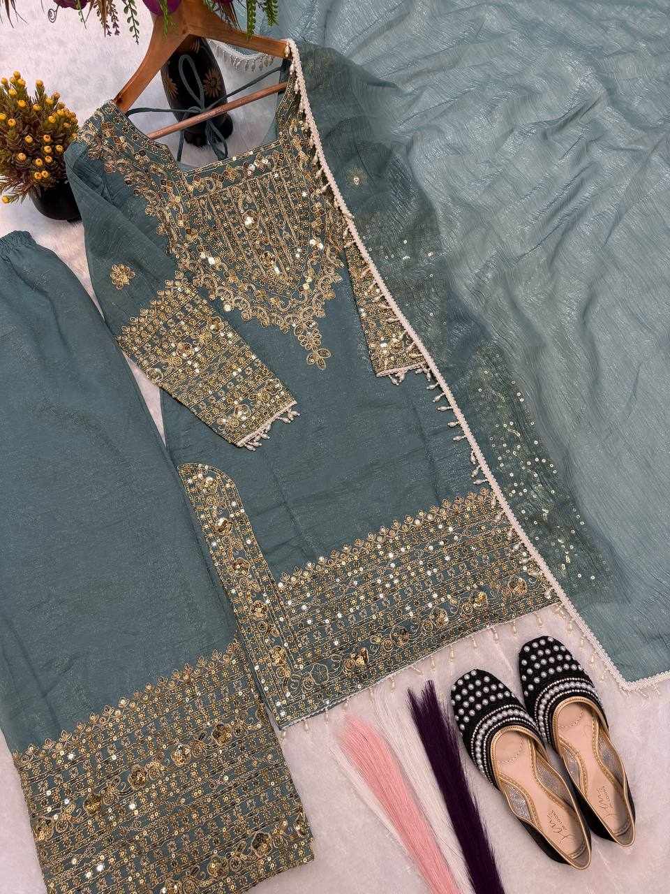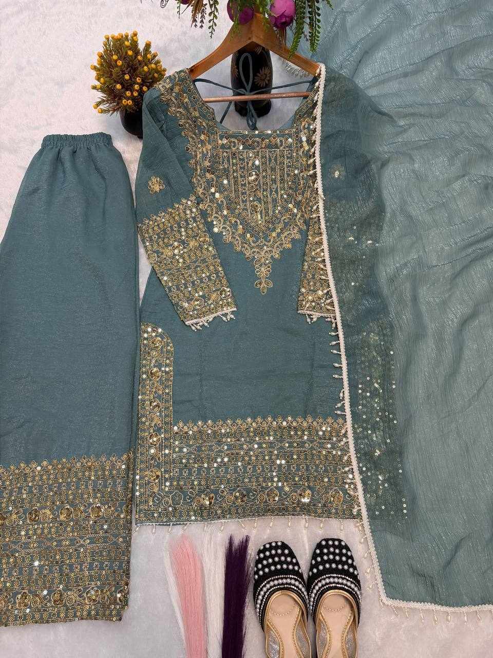 • Fabric: Heavy Crunchy Silk with Heavy Thread Embroidery & Sequence Work