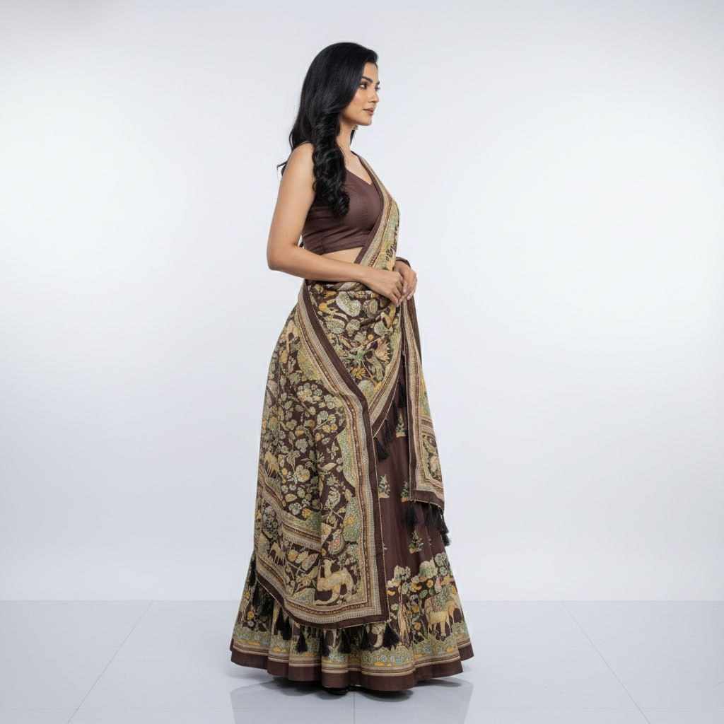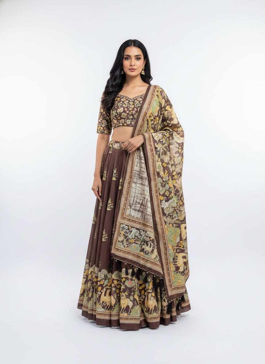 PIYU 23-2 Silk Digital Print Brown Lehnga