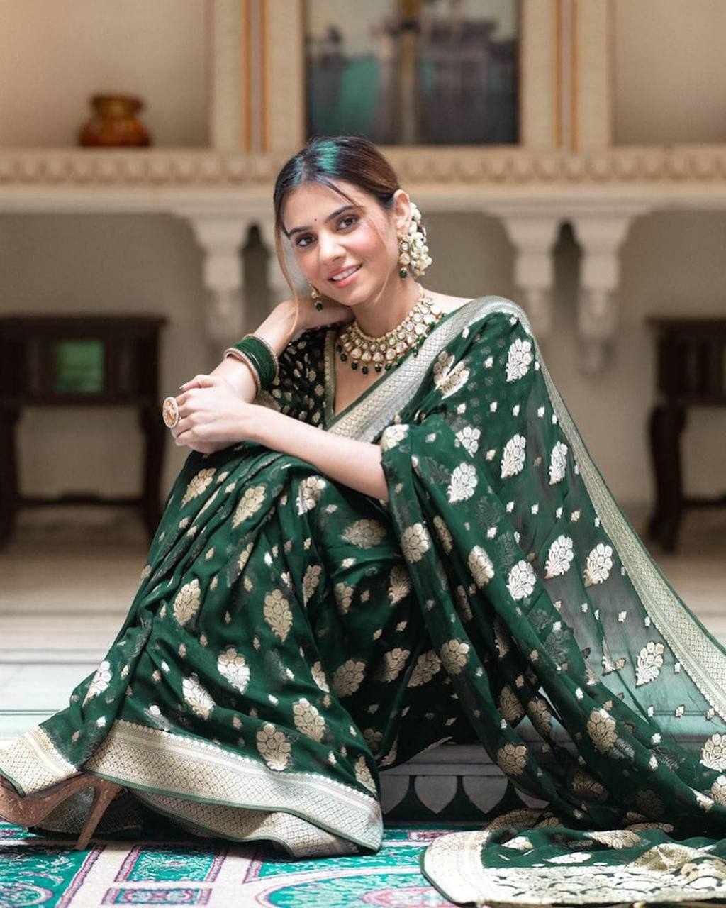KP-R 190 New Traditional Wear Green Saree