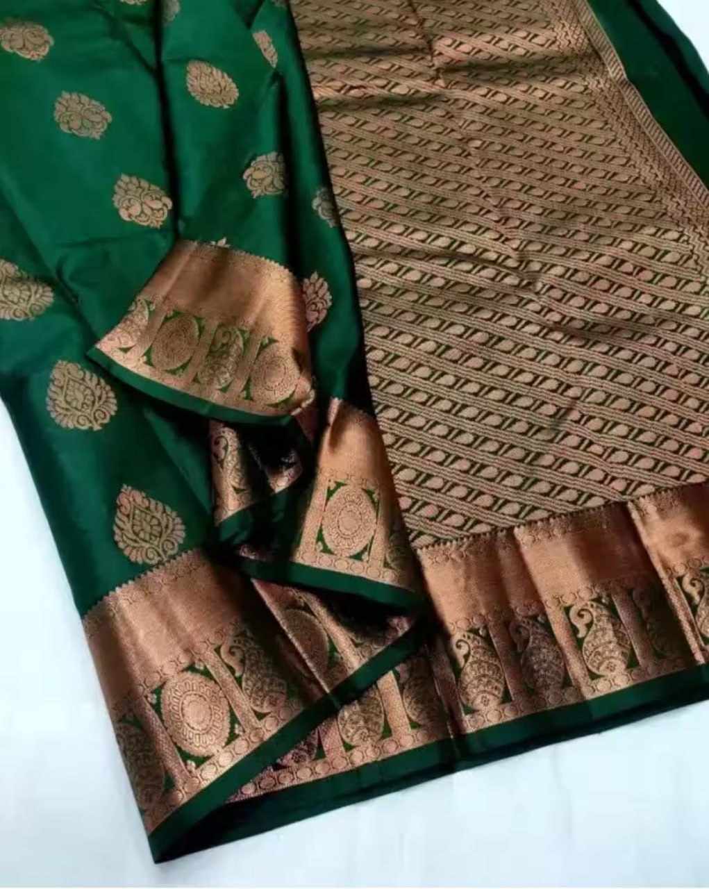 | Name : | MF 1940 GREEN SOFT LICHI SILK SAREE |