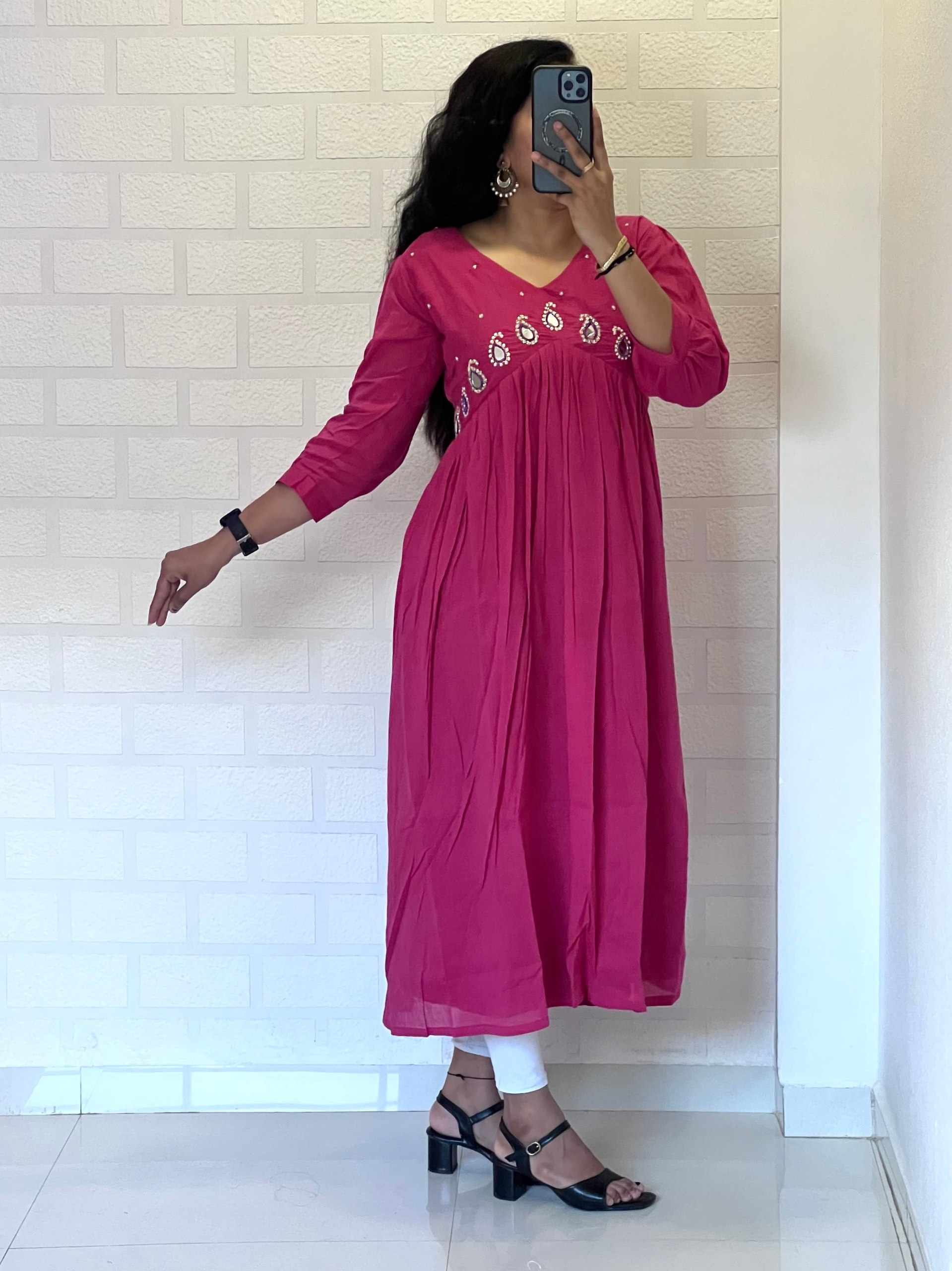 JKWH 999 Pure Fine Cotton Febric Embroidery Work A-line Kurti Set With Pocket