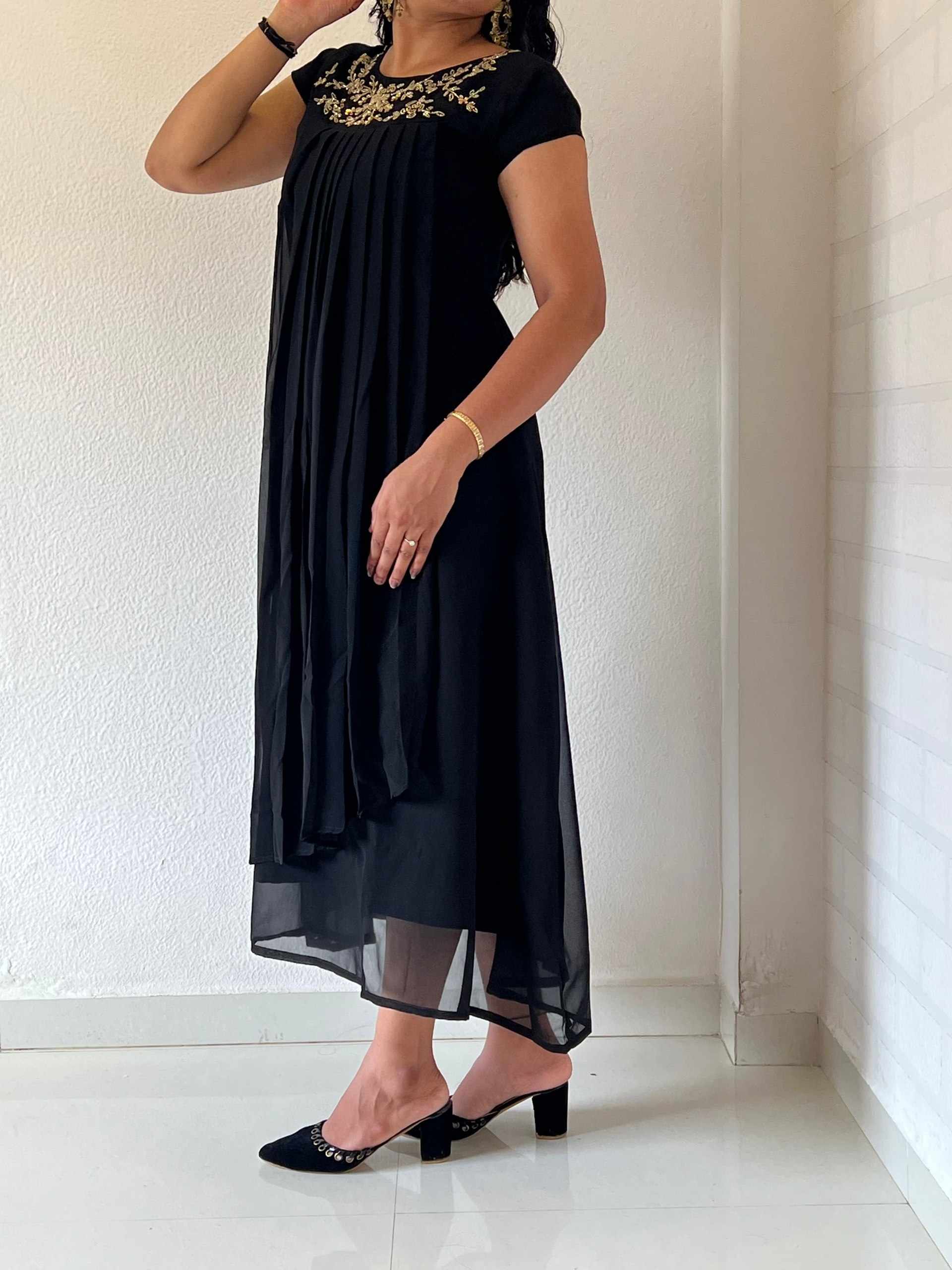 WM13 BLACK BLOOMING GEORGETTE DESIGNER KURTI