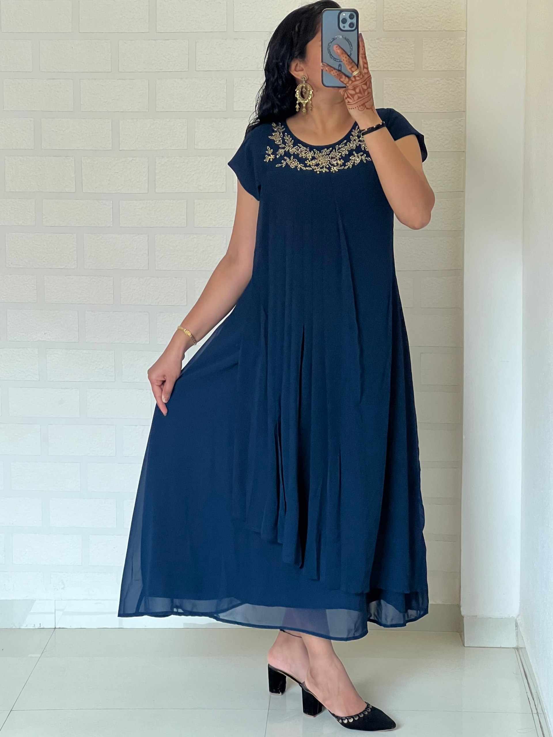 FABRIC - Blooming Georgette Handwork Kurti with Cap Designer Sleeves (Khatli - Maggam Wo